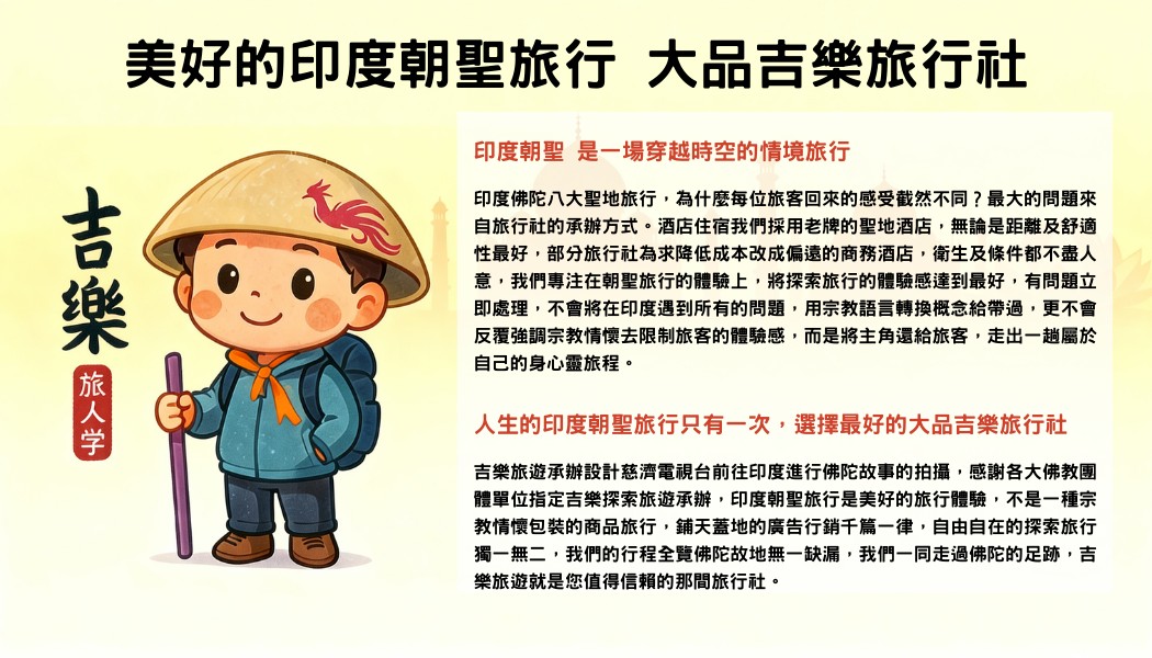 3. 專業技術流派,不是利用宗教情懷作為廣告的營銷公司,不會將不良行程設計推給當地環境。